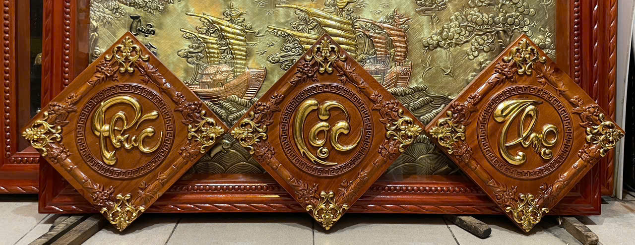 | Tên sản phẩm: | Tranh gỗ hương đỏ, Phúc lộc thọ -TG096 |