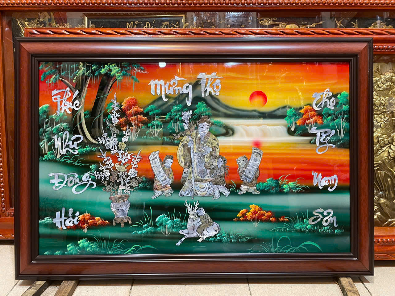 Tranh sơn mài khảm ốc, Mừng thọ Bà – M60