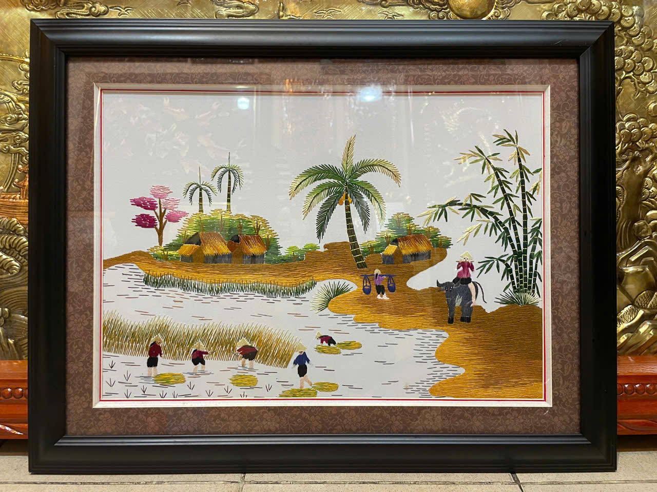 | Tên sản phẩm: | Tranh thêu tay T085 – Đồng quê |