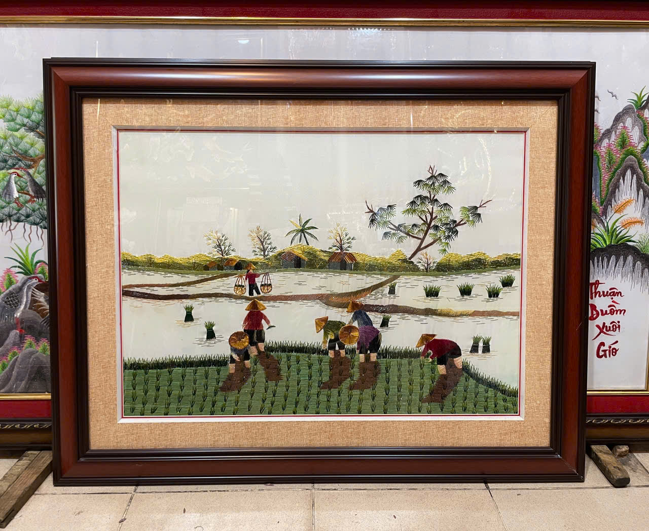 | Tên sản phẩm: | Tranh thêu tay, vào vụ cấy – T228 |