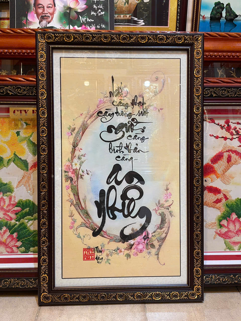 Chất liệu tranh in thư pháp chật liệu mực cao cấp, không ố màu, không ngấm nước, độ bền 50 năm vẫn đẹp
