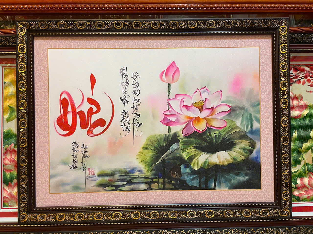 Chất liệu thư tranh thư pháp được in trên chất liệu cao cấp, không thấp nước, ngâm rửa thỏa mái không hư, ép trên foam mex có độ nhẹ bền , lồng khung cao cấp, có thể lồng kính nếu quý khách muốn.