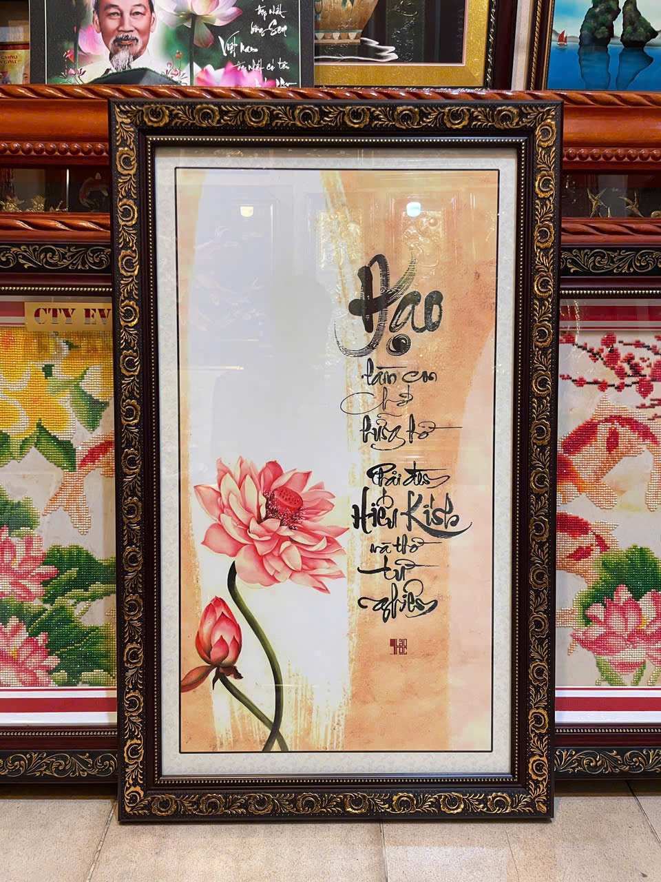 Chất liệu tranh in thư pháp chật liệu mực cao cấp, không ố màu, không ngấm nước, độ bền 50 năm vẫn đẹp